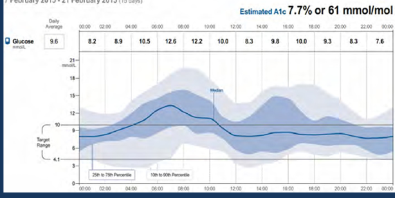 "Together, the graphic display and the quantitative data provide a comprehensive overview of diurnal glucose patterns that, in turn, are the basis of clinical decision-making. The use of a common reporting structure can contribute to the efficacy of CGM technology as it becomes possible to use different devices and employing a standard report, compare data"